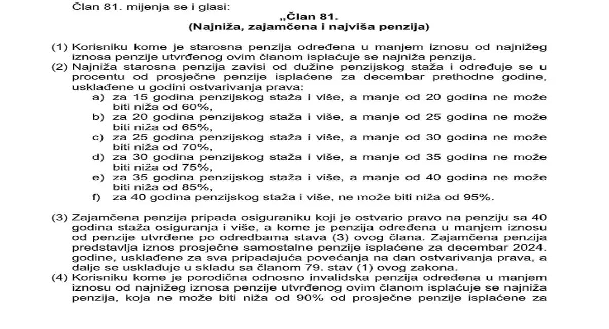 Zato želim jasno reći: ove izmjene idu u korist radnika, ljudi koji rade 20, 25, 30 i više godina. Oni će, zahvaljujući novom sistemu, imati znatno veće i pravednije penzije nego što ih imaju sada. Svaki radnik koji ima 20 i više godina staža treba da zna da ovaj zakon štiti upravo njegov rad i njegov doprinos sistemu.
