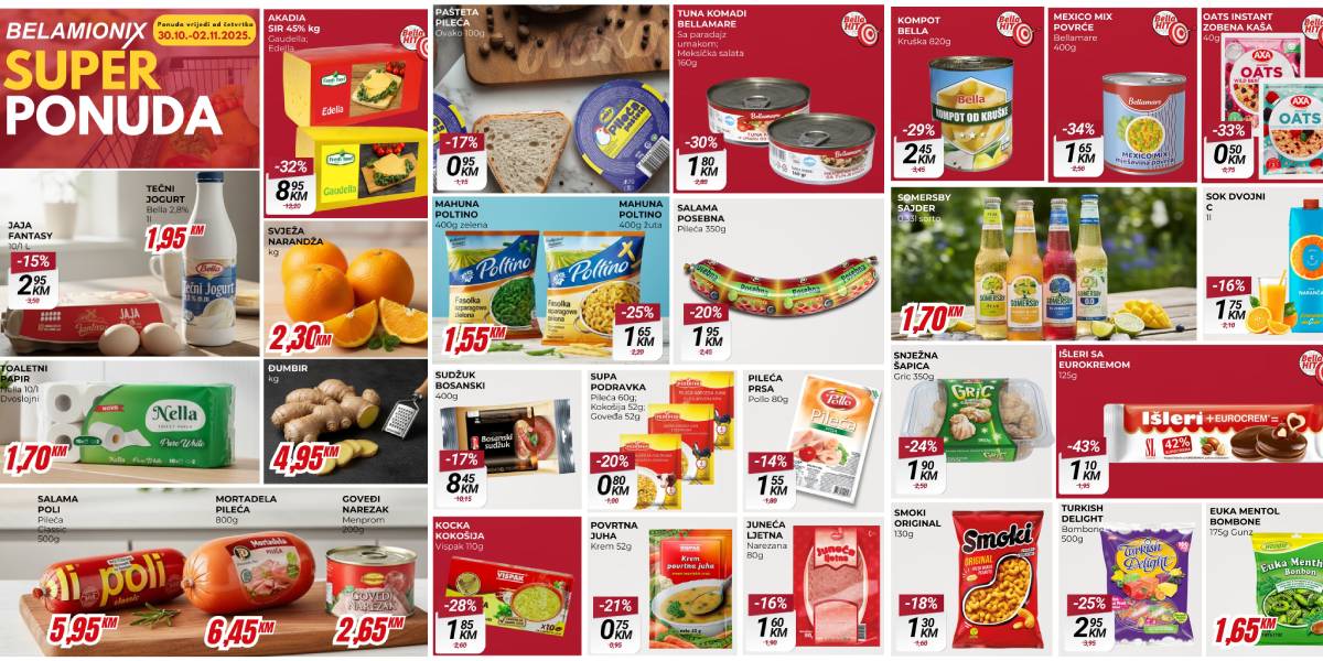 Na akcijskim cijenama u prodavnicima Belamionix može se naći poli salama od 500 grama koja košta 5,95 KM, zatim pileća mortadela koja košta 6,45 KM za 800 grama, dok je goveđi mesni narezak 2,65 KM za 200 grama.