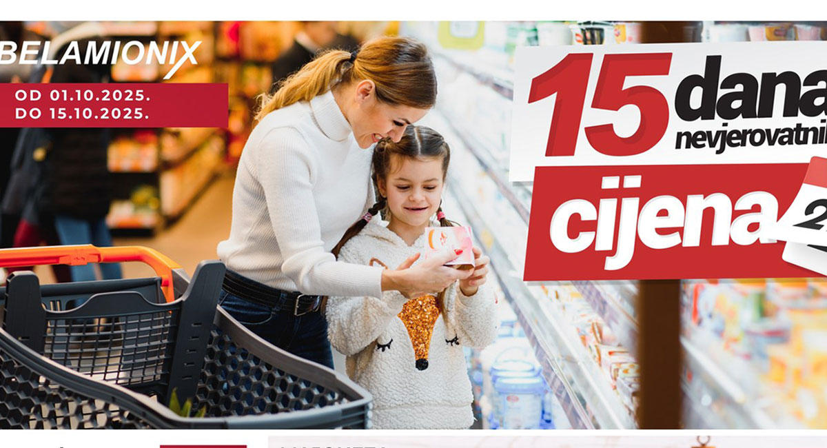 U objektima marketa Belamionix takođe će biti sniženja koja će trajati od 1. oktobra do 15. oktobra. U ovim marketima mlijeko sa 2,8 posto mliječne masti moći će se kupiti po cijeni od 1,8 KM dok će cijena goveće i pileće supe Podravka koštati 1,1 KM.
