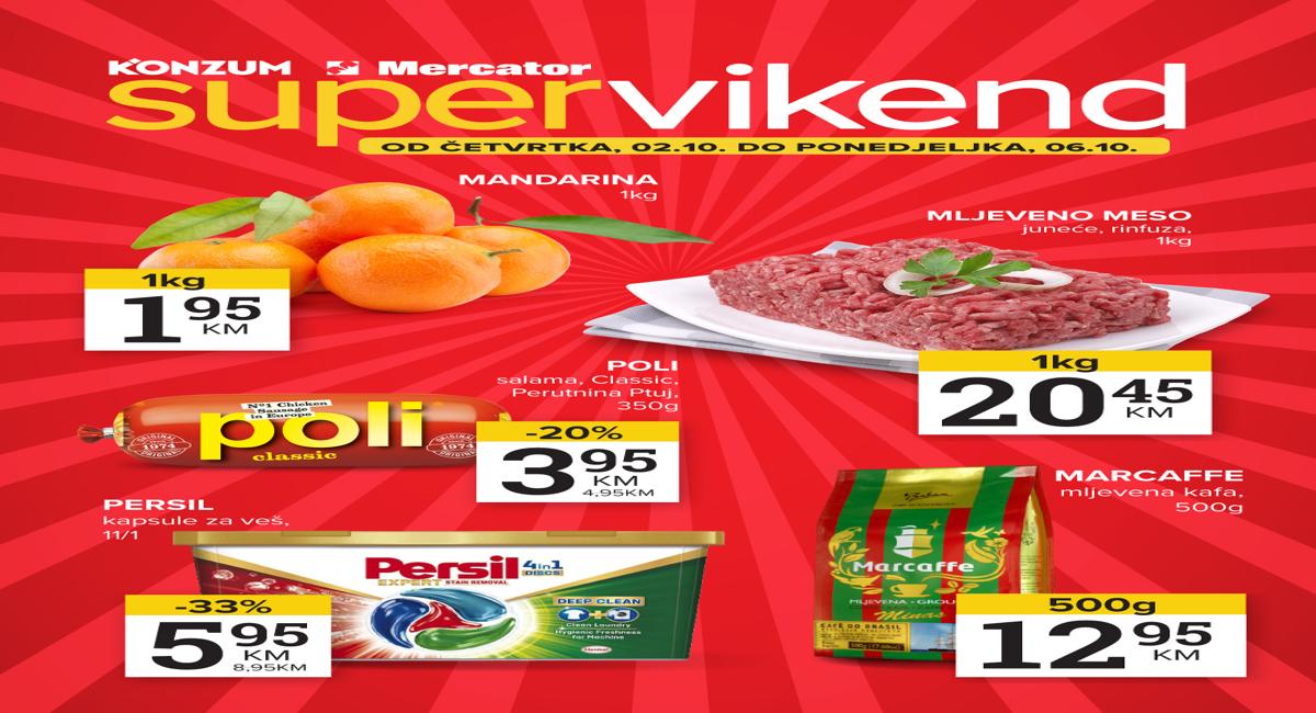 U marketima Konzum “vikend” akcija je počela još danas i trajaće sve do ponedjeljka. Osim u prodavnicama Konzum, ista akcija biće realizovana i u Mercator prodavnicama.